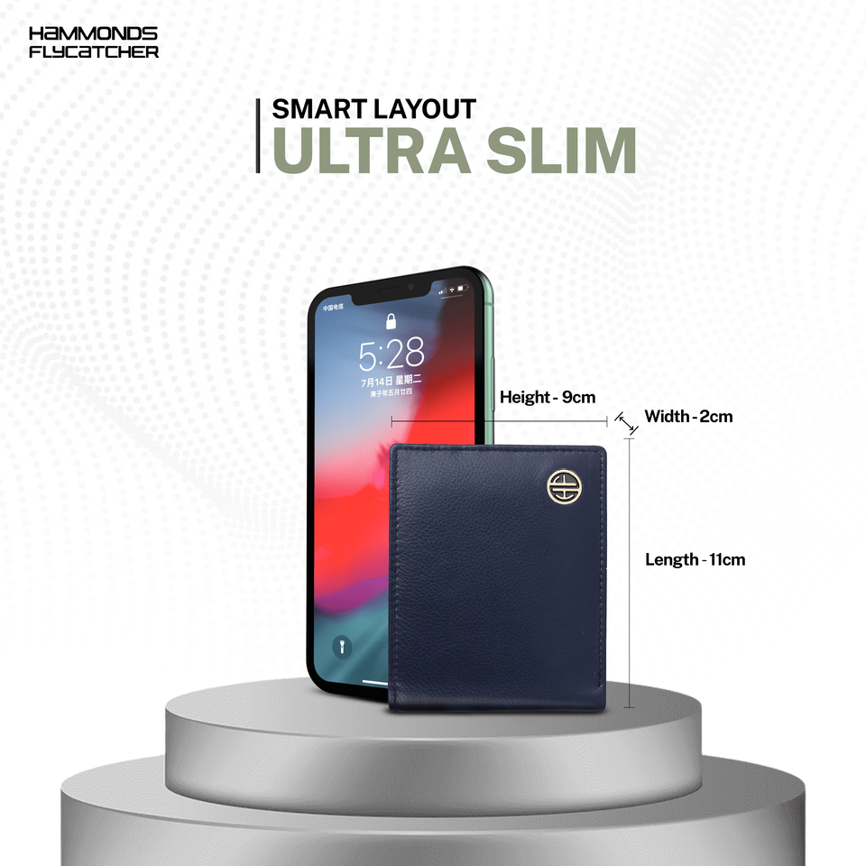 Blue Genuine Leather Bifold Money Wallet RFID Protected Wallets for Men 6 Card slots, 1 coin pocket