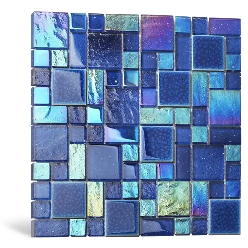 Blue Glass Iridescent Starry Mosaic Tile 5 Sheets for Kitchen Backsplash Firebrick Interior Square Tiles for Living Room
