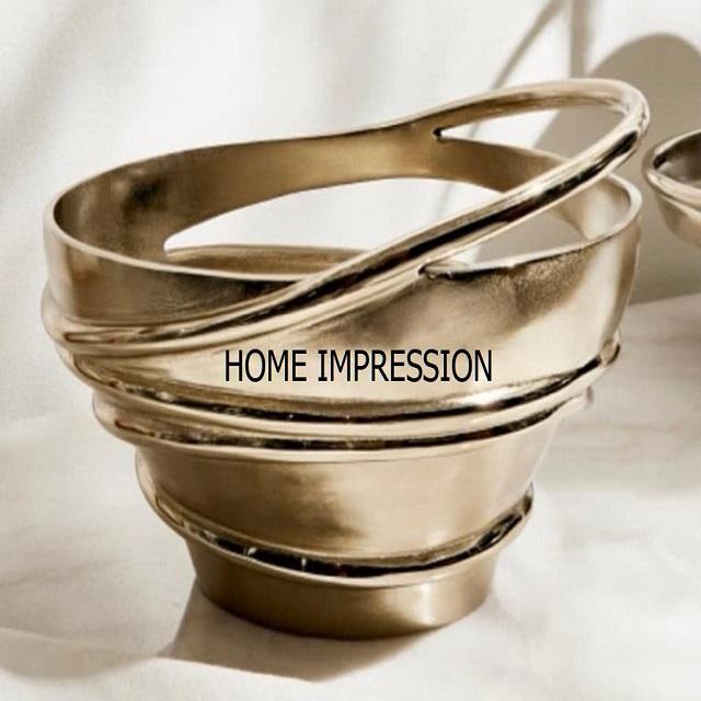 Blue Glass Metal Hammered Base Fancy Serving Bowl