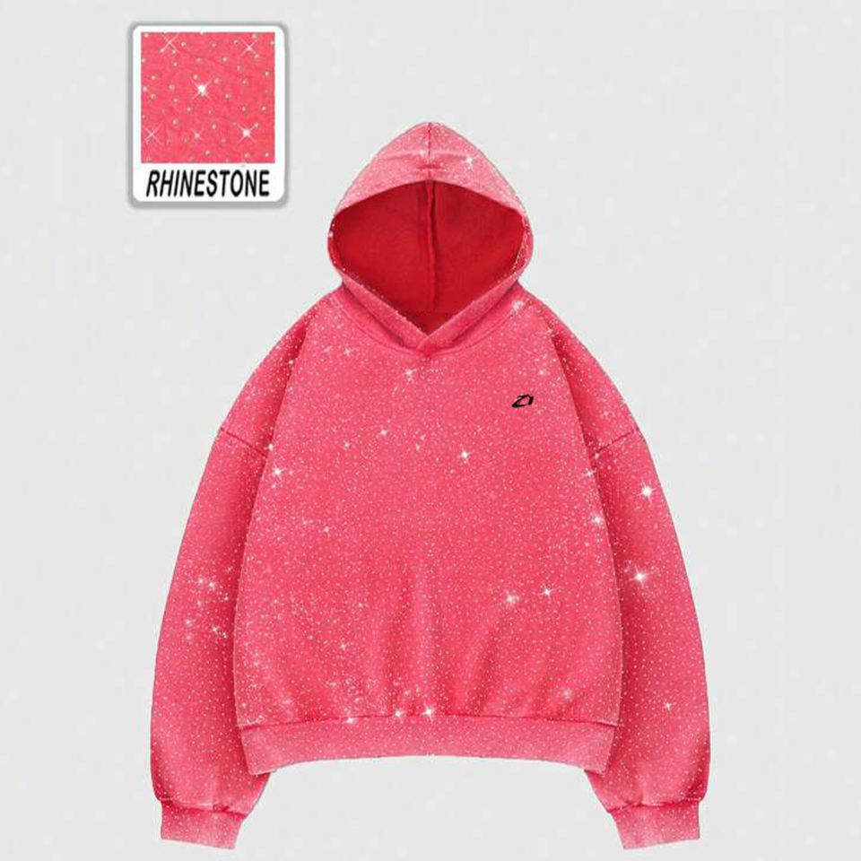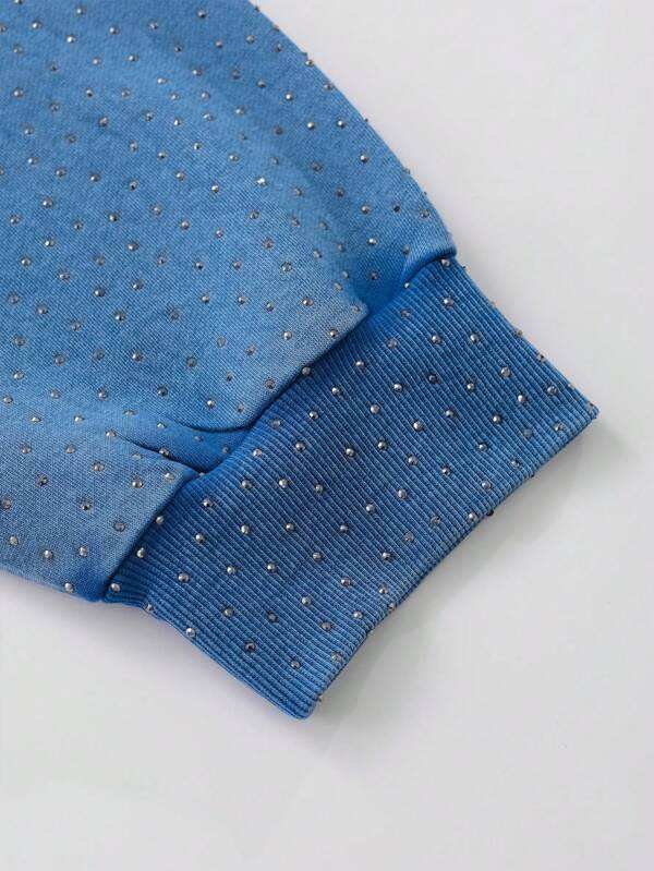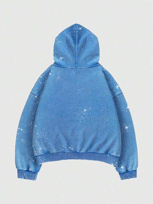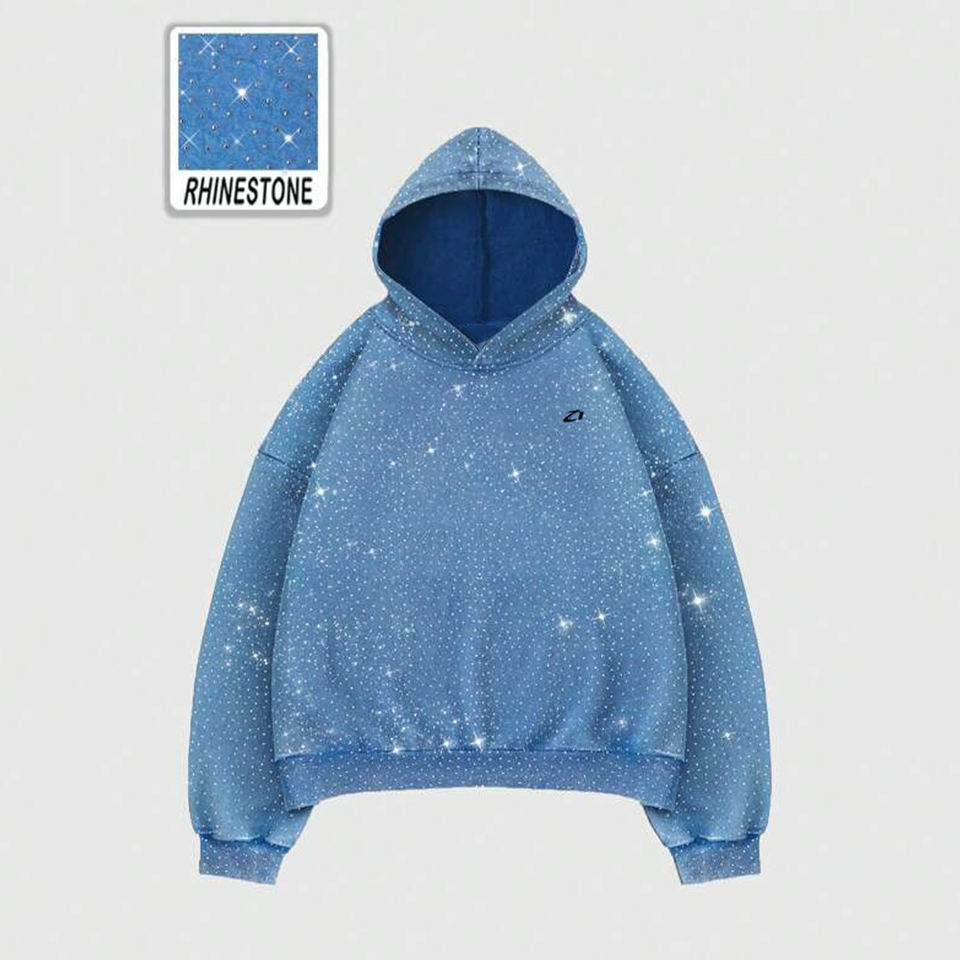 Blue Gradient Rhinestone Hoodies Cotton Fleece Oversized Pullover Hoodies for Men Streetwear Smooth Finish Bulk Supply