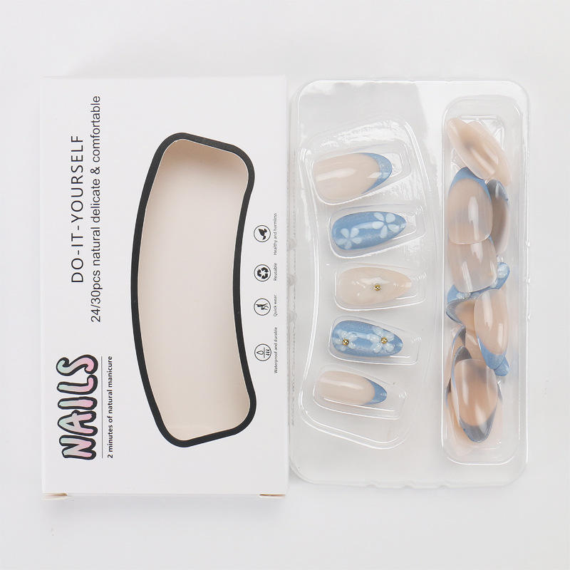 Blue Hand-Painted Carved Nail Tips European and American Cross-Border Handmade Summer Ice Transparent Wearable Fake Nails