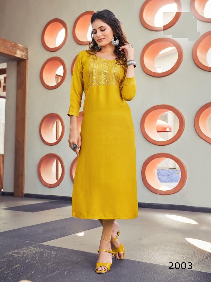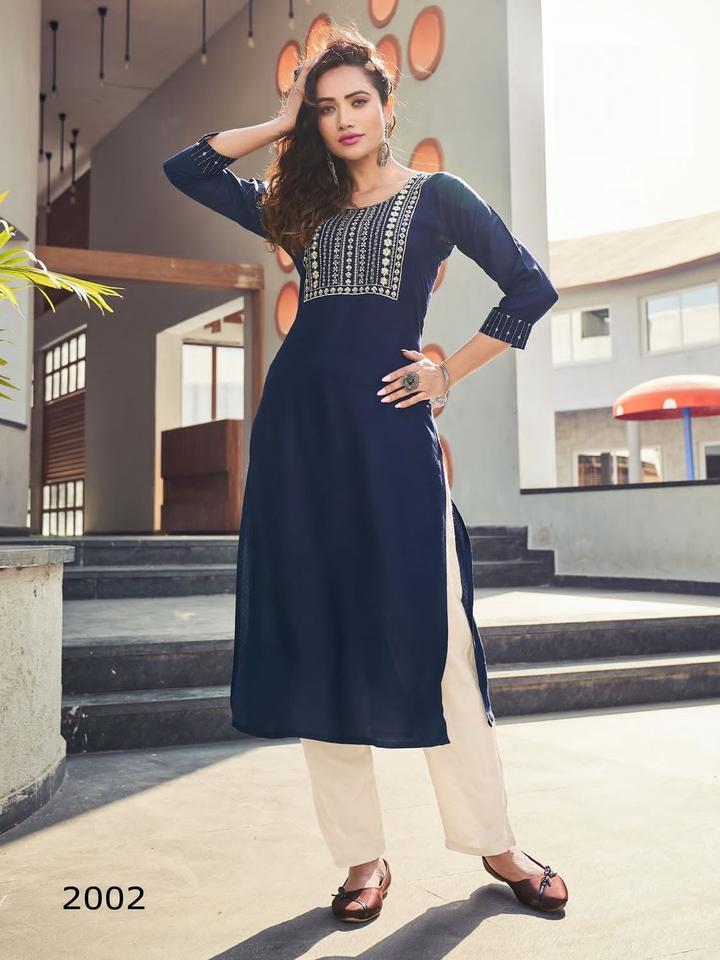 Blue Hills Latest Viscose Dobby Design Ladies Kurti with Zari Embroidery and Sequence Work Collection