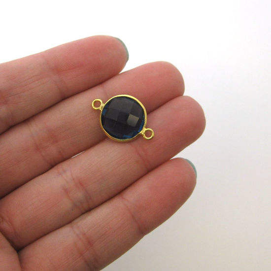 Blue Iolite Faceted Gemstone 12x12mm Gold Plated Connector 925 Sterling Silver Round Cut Bezel Jewelry Making Charm Findings