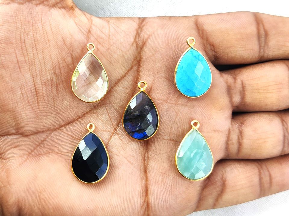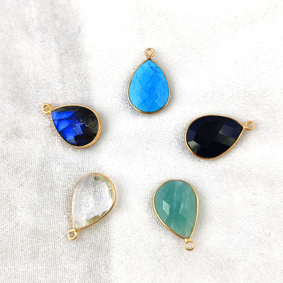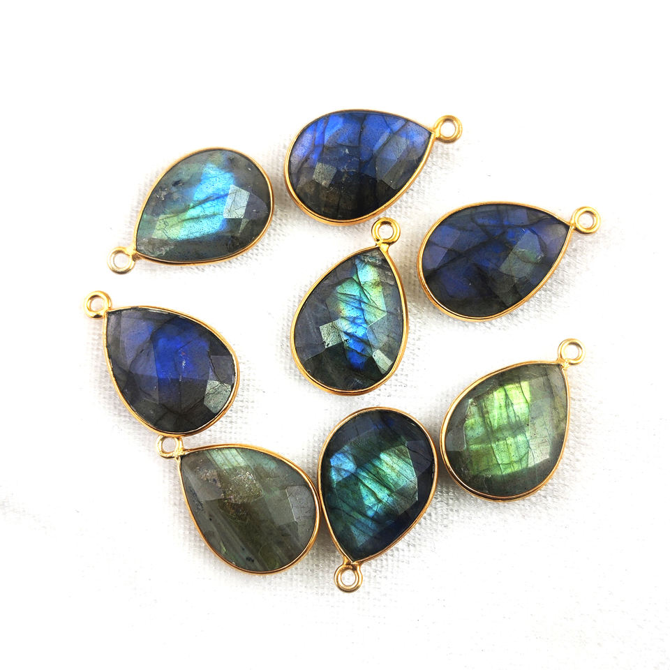 Blue Labradorite Gemstone Pendant 18x13mm Pear Shape Faceted Cut 925 Sterling Silver Bezel Set Gold Vermeil Fine Charms Parties