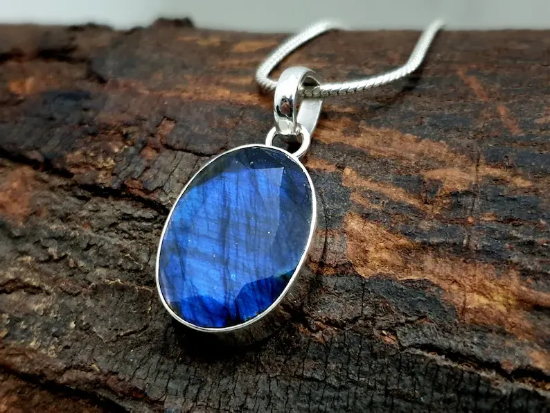 Blue Labradorite Pendant Labradorite Necklace 925 Sterling Silver Pendant Labradorite Oval Necklace Gift for Her