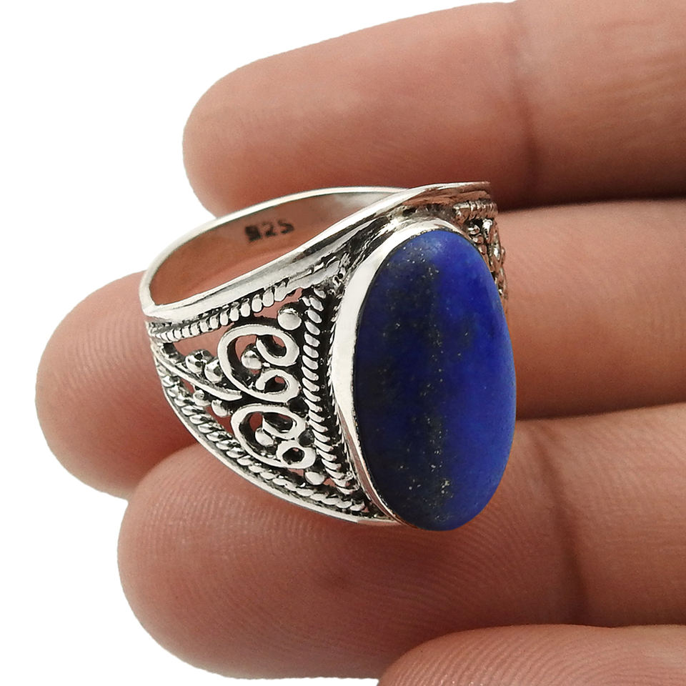 Blue Lapis Lazuli Bezel Set Oval Gemstone 925 Sterling Silver Ring Antique Fine Jewelry Gifts for Women Wholesale Jewelry Rings