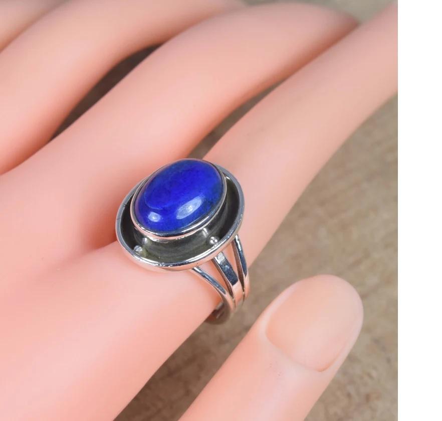 Blue Lapis Lazuli Oval Ring 925 Sterling Silver Natural Gemstone Handmade Mens Jewelry September Birthstone Gift Valentine Day