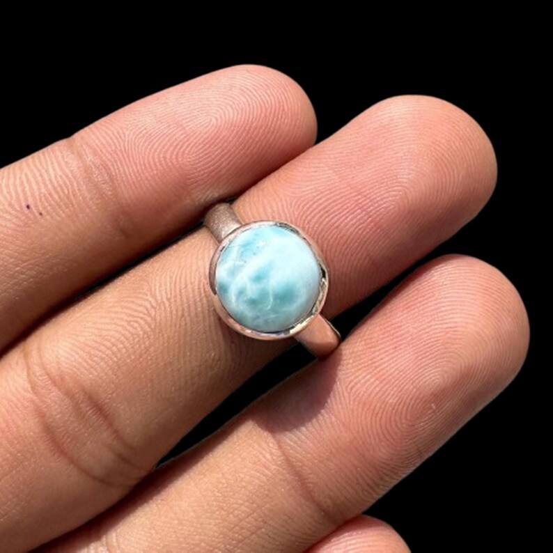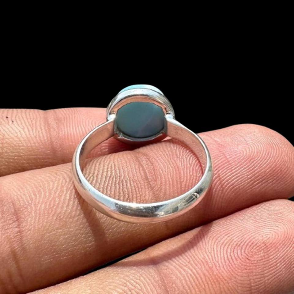 Blue Larimar 925 Sterling Silver Natural Gemstone Elegant Jewelry Ring Round Shape Ring Blue Larimar Jewelry Wedding Gift
