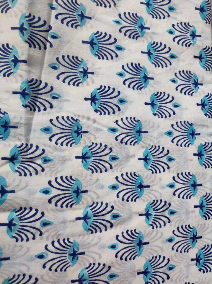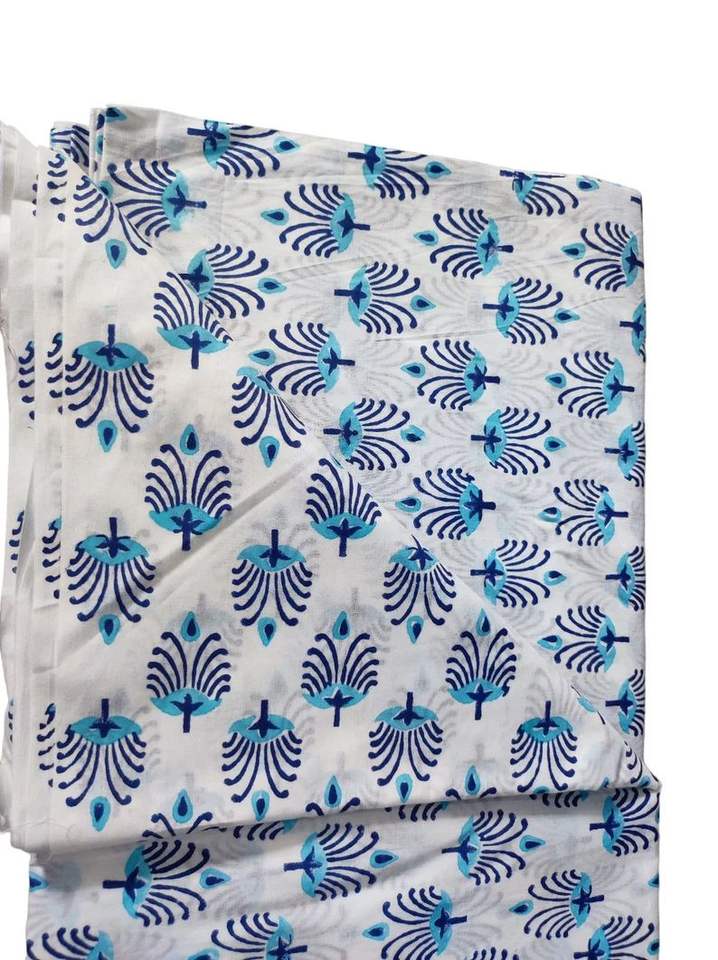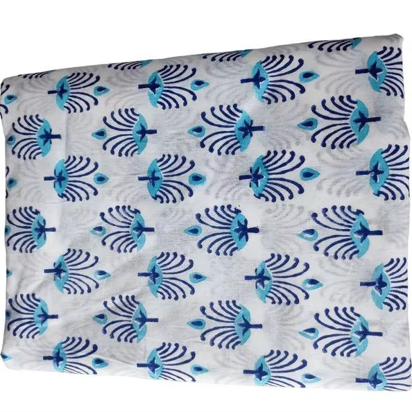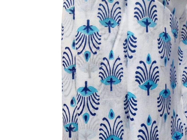 Blue Leaf Natural Floral Printed Nomex Fabric Lightweight Cotton Material for Women's Running Dresses Unique Gift Idea for Girls
