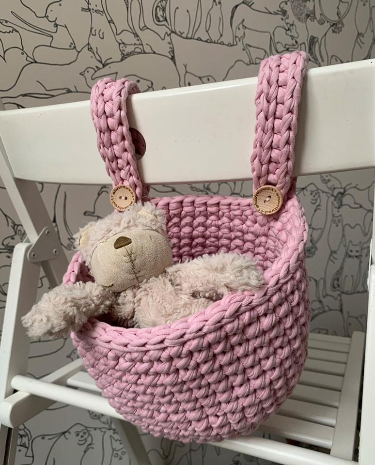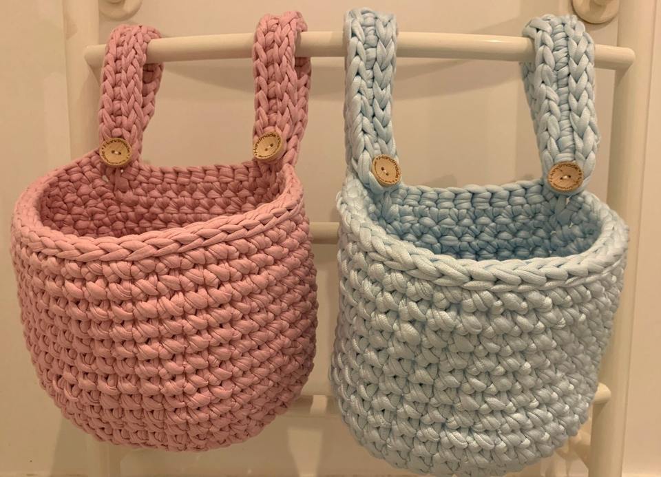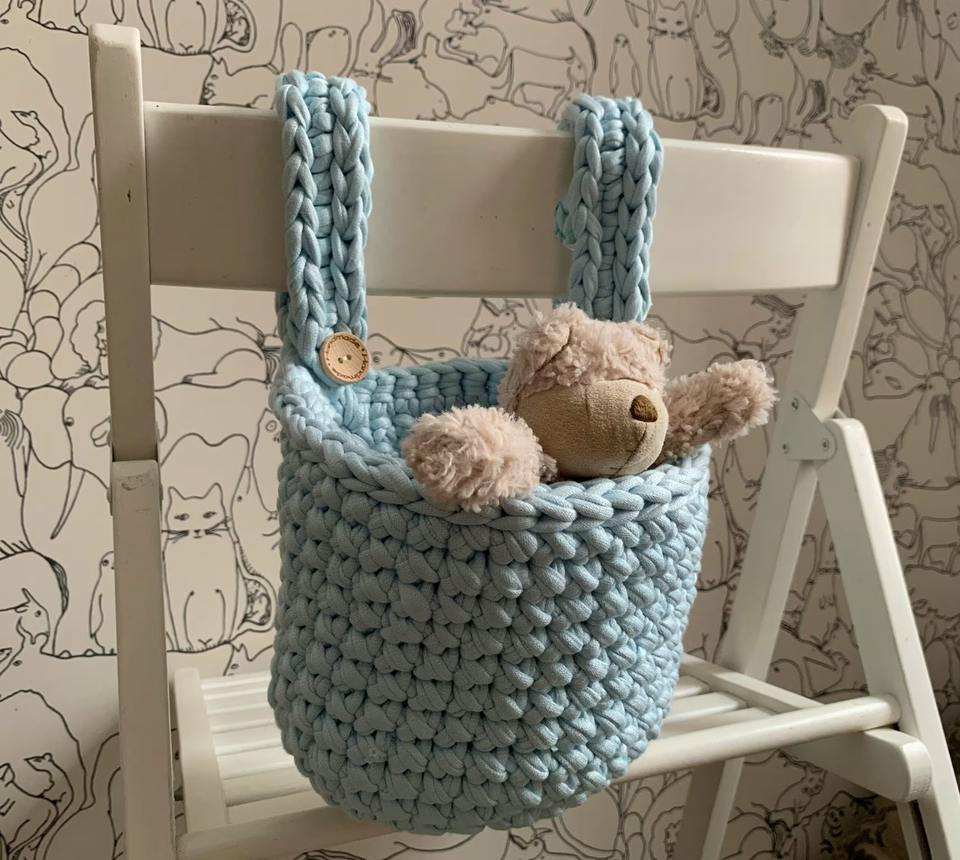 Blue Macrame Fiber Storage Basket Handmade Organizer Stylish Home Decor Tabletop Bedroom Living Room Functional Use From India