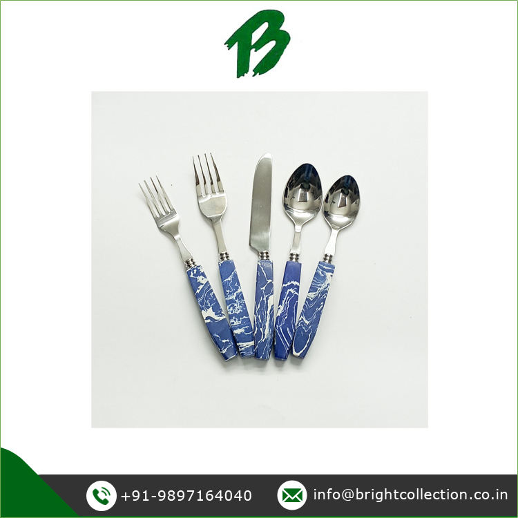 Blue Marble Shades Resin Handle Cutlery Set Unbeatable Quality Spoon Fork Knife Flatware Set Available at Reasonable Price