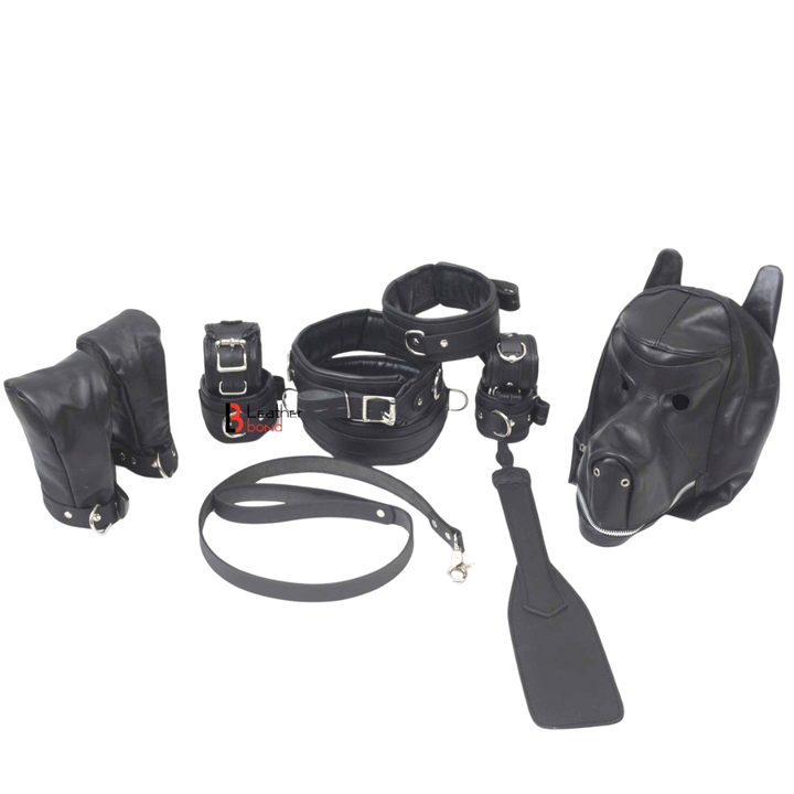Blue Men's Eco-Friendly Role Play Bondage Set with Leather Cuffs Collar Paddle Rope and Fetish Gear
