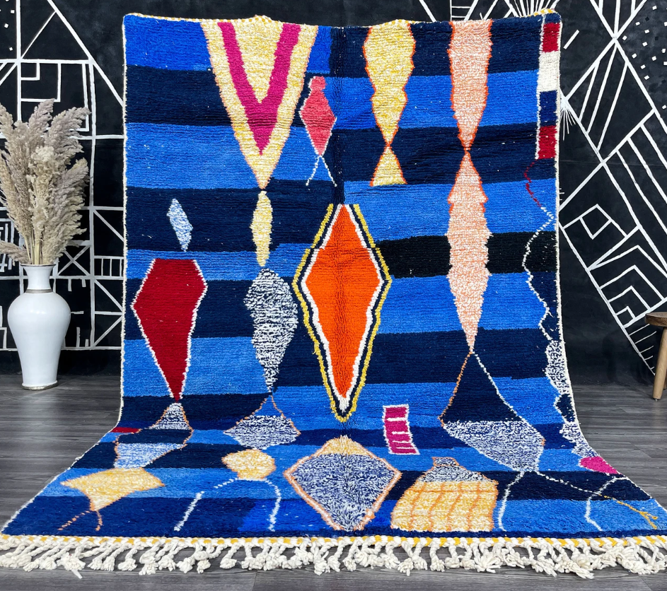 Mode:Blue Moroccan Abstract Beni Ourain Rug Custom Made Living Room Rug
