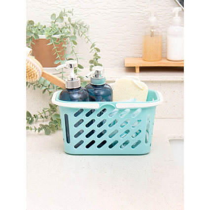 Blue Multipurpose Handle Basket with Flexible PP Wicker Material Small Size Square Shape for Bathroom Home Decor Carton Packed