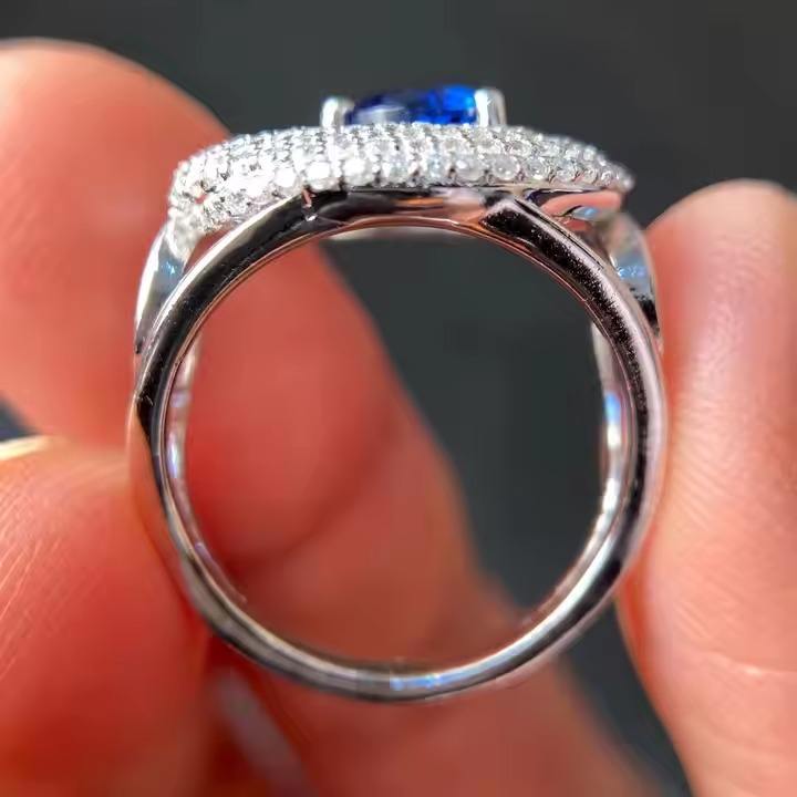 Blue Navy Sapphire Crystal Cocktail Ring Original Moissanite Diamond Blue And White Statement Ring 925 Silver Solitaires Ring
