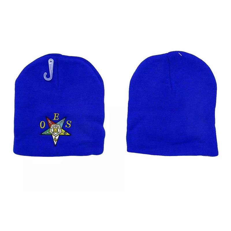 Blue OES Mason Masonic Order of the Eastern Star Embroidered Beanie Regalia High Quality Wholesale Customized Knitted Beanies