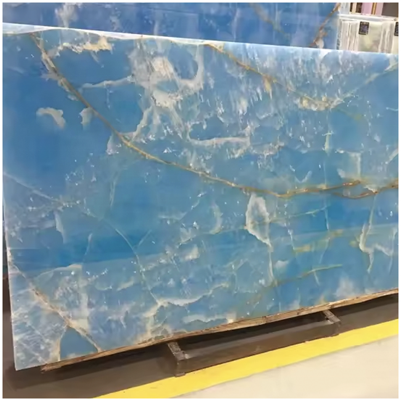 Blue Onyx Slab With Gold Vein For Indoor Flooring Wall Clading and Bathroom Vanity Top Stone