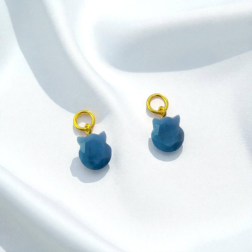 Blue Opal Gemstone Cat Carved Charms Pendant - 925 Silver Animal Carved Stone - Kids Bracelet Charm Wholesale