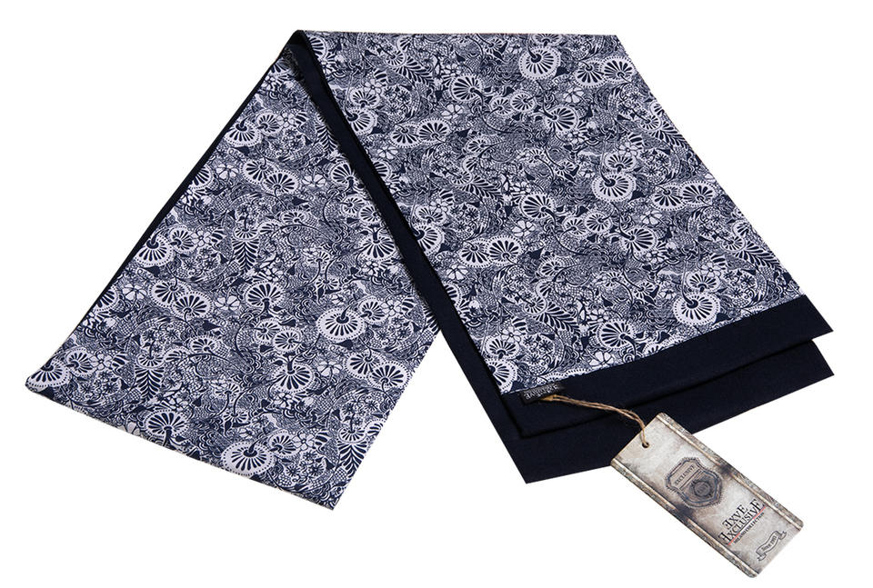 Blue Paisley White on the Double Faced Man Made Silk and Pure Wool Backside Men's Scarf