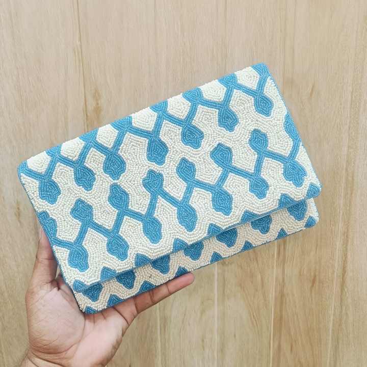 Blue Pattern Geometric Beaded Women's Messenger Bag Unique Handcrafted Design Zipper Fashionable Bohemian Style Autumn Travel