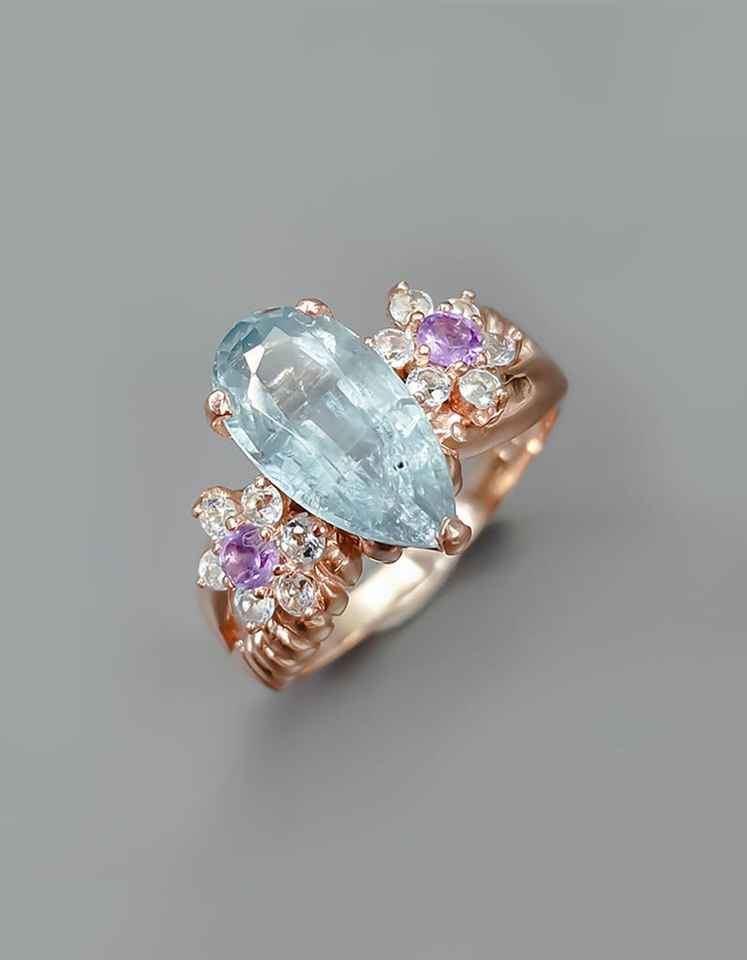 Blue Pear Aquamarine Ring for Women Natural Gemstone Statement Gift for Mom Daughter Rose Gold 925 Sterling Silver