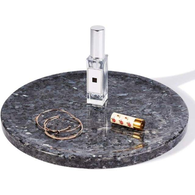Cork Mill Store Blue Pearl Marble Round Serving & Decorative Vanity Tray 11.8 Natural Stone for Kitchen Coffee Table & Bathroom