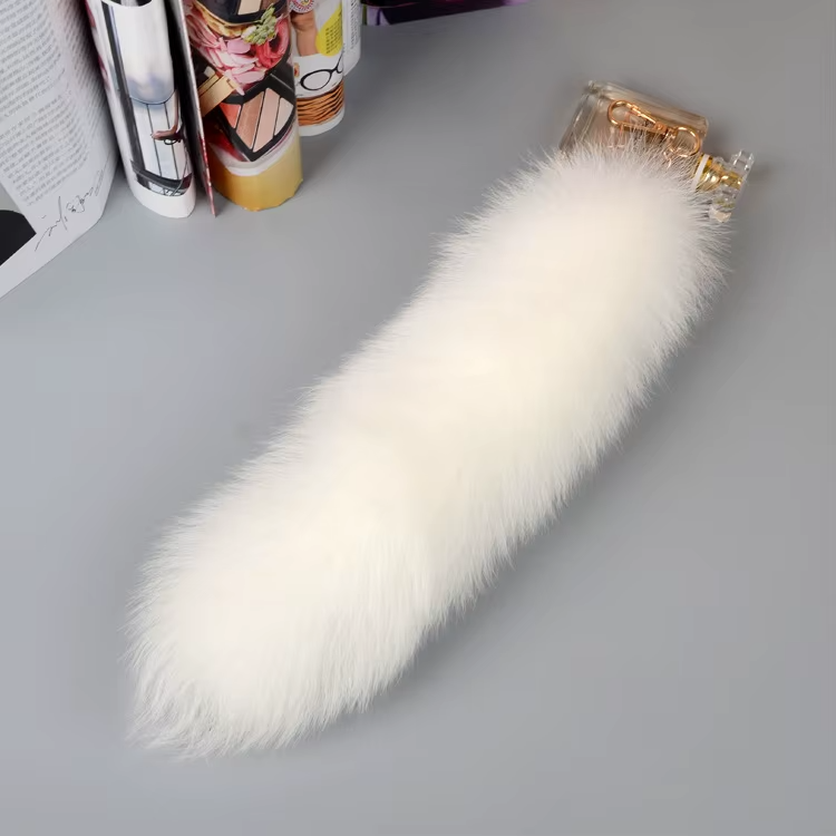 Blue Pendant Wholesale Crystal 40cm Large Fluffy Fox Fur Tail Key Chain Real Natural