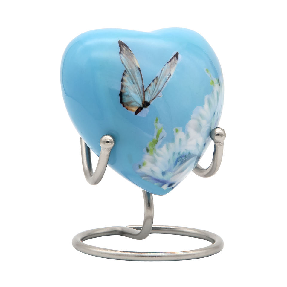Blue Printed 50ml Small Heart Shaped Cremation Urn for Ashes | Memorial Urn Manufacturer