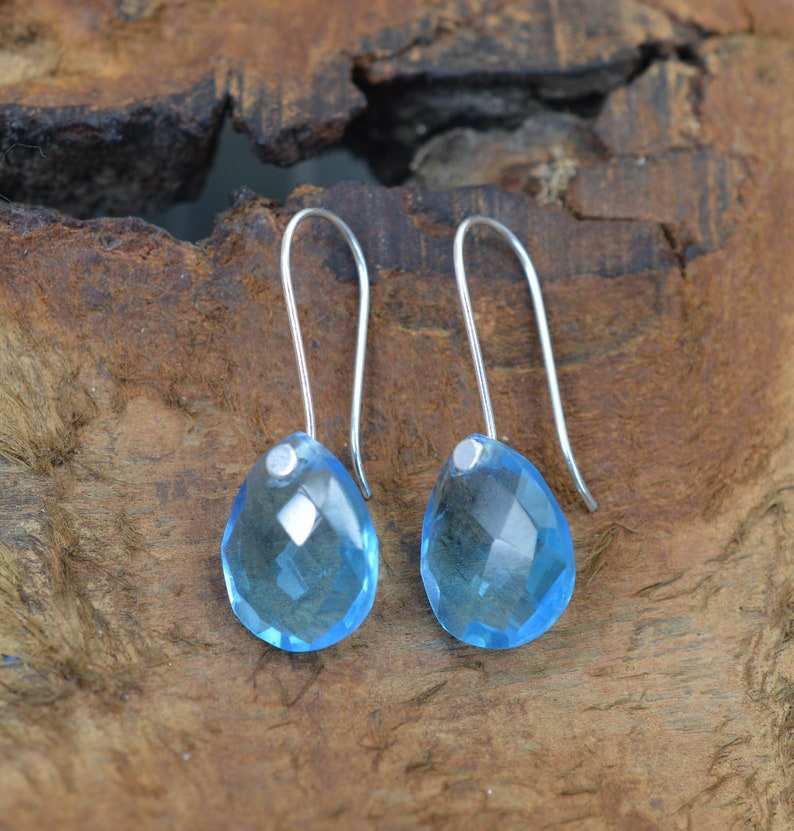 Blue Quartz 925 Sterling Silver Drop Earrings Pear Shape Faceted Gemstone Jewelry Gift for Her