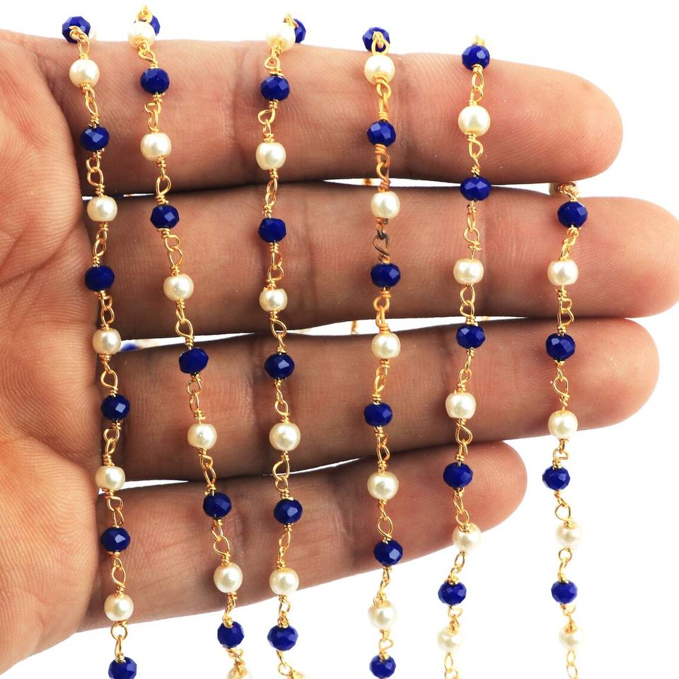 Product name:Blue Quartz Hydro & Pearl Rosary Style Beaded Chain