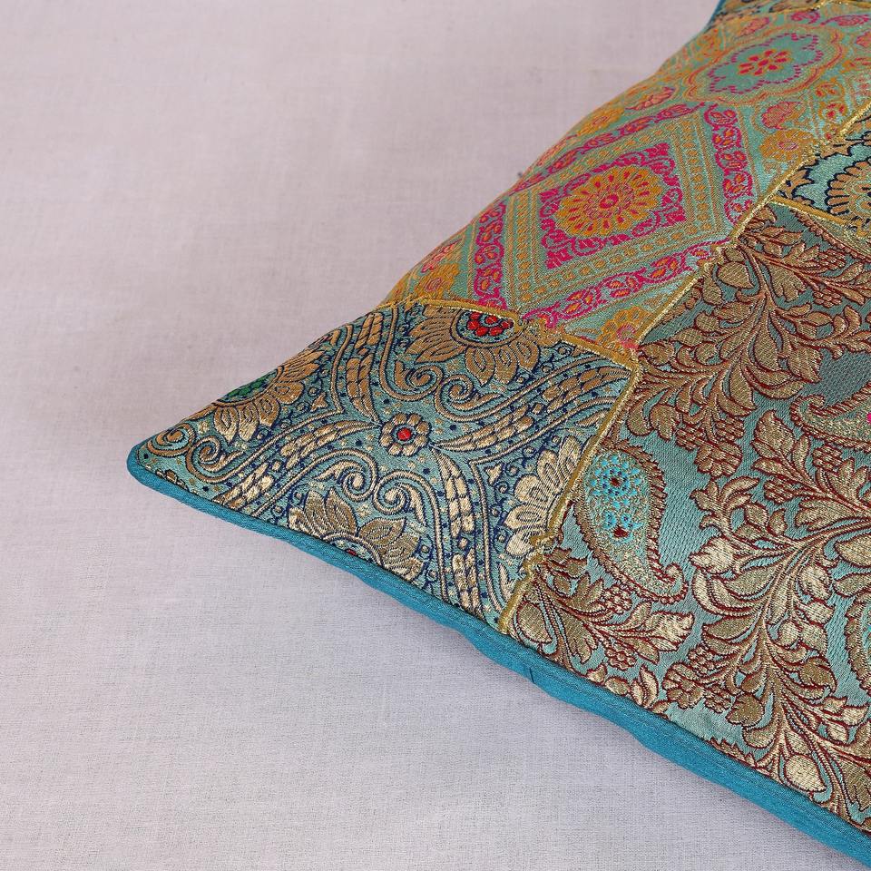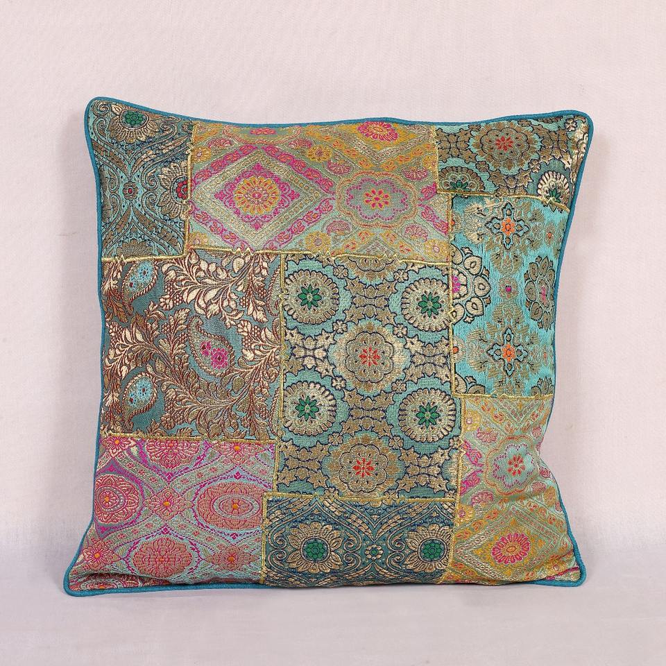Blue Rama Brocade Patch Cushion Cover Luxury Vintage Plant Celebrities Digital Printed Zippered 45x45 Rayon Blend Washable New