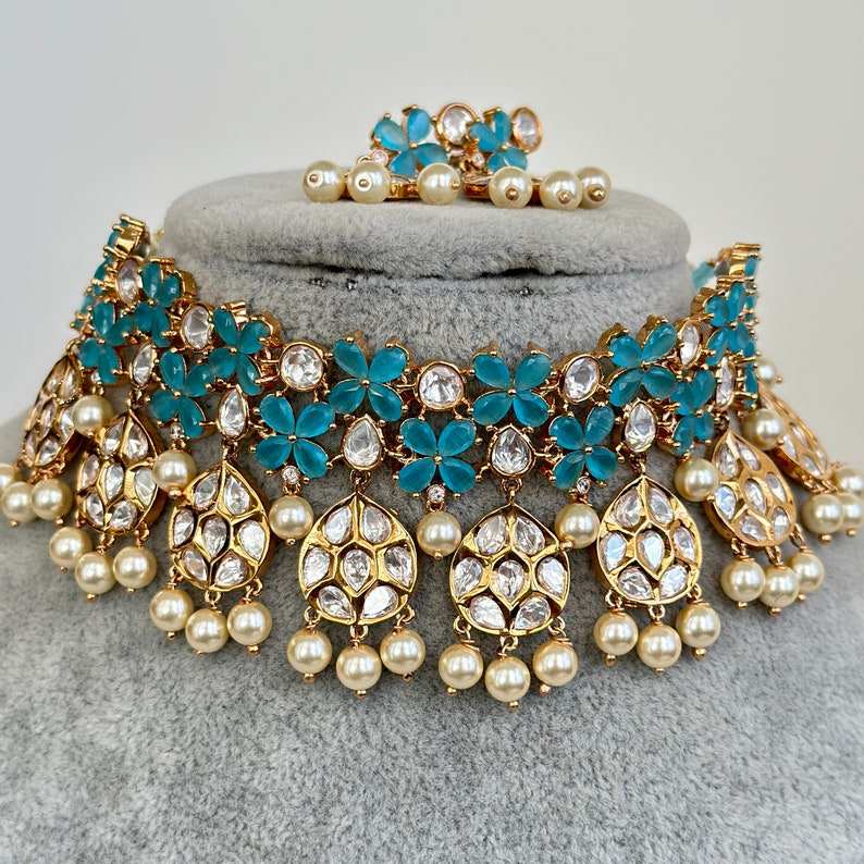 Traditional Ethnic Blue Bridal Kundan Jewelry Premium Quality Jewelry