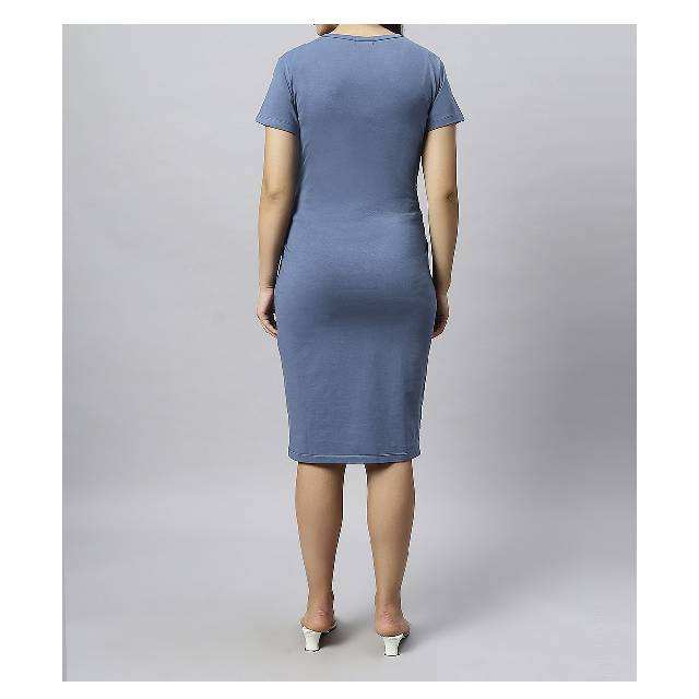 Blue Round-Neck Maternity Dress for Pregnant Women Casual Knee-Length Woven Midi Dress Eco-Friendly Beach Style
