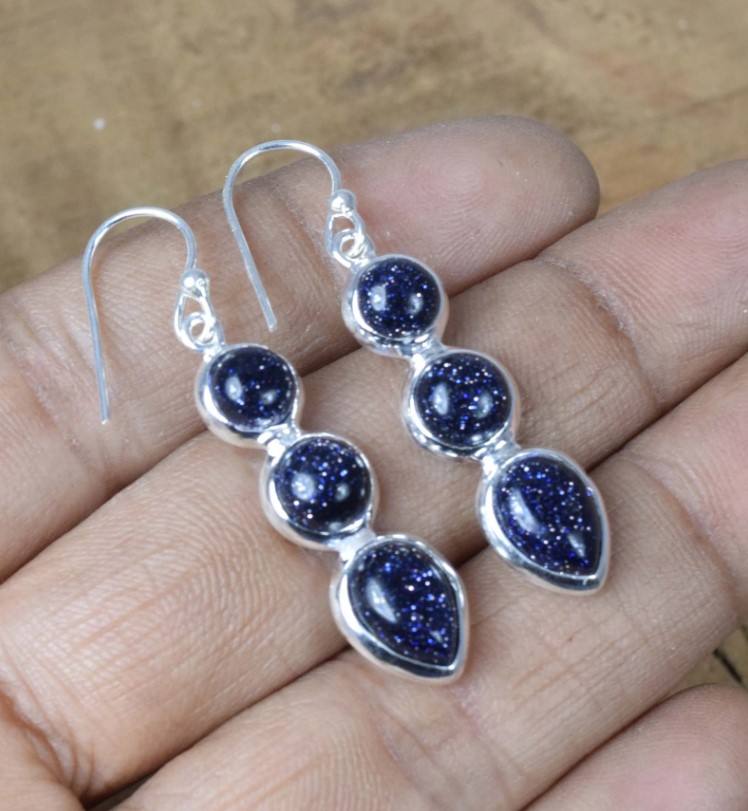 Product Name:Blue Sandstone Gemstone Silver Earrings