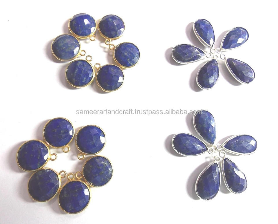 Blue Sapphire Bezel Natural Multi Gemstone Jewelry Wire Wrapped Oxidized Vintage Gold Plated Handmade Connector