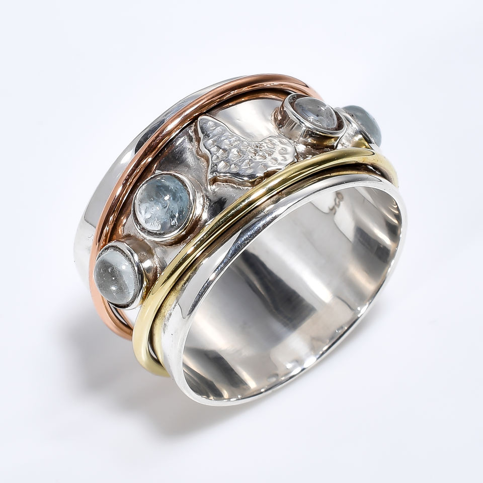 Blue Sapphire Gemstone 925 Sterling Silver Meditation Spinner Ring, Antique Silver Gemstone Jewelry Exporter, 925 Silver Jewelry