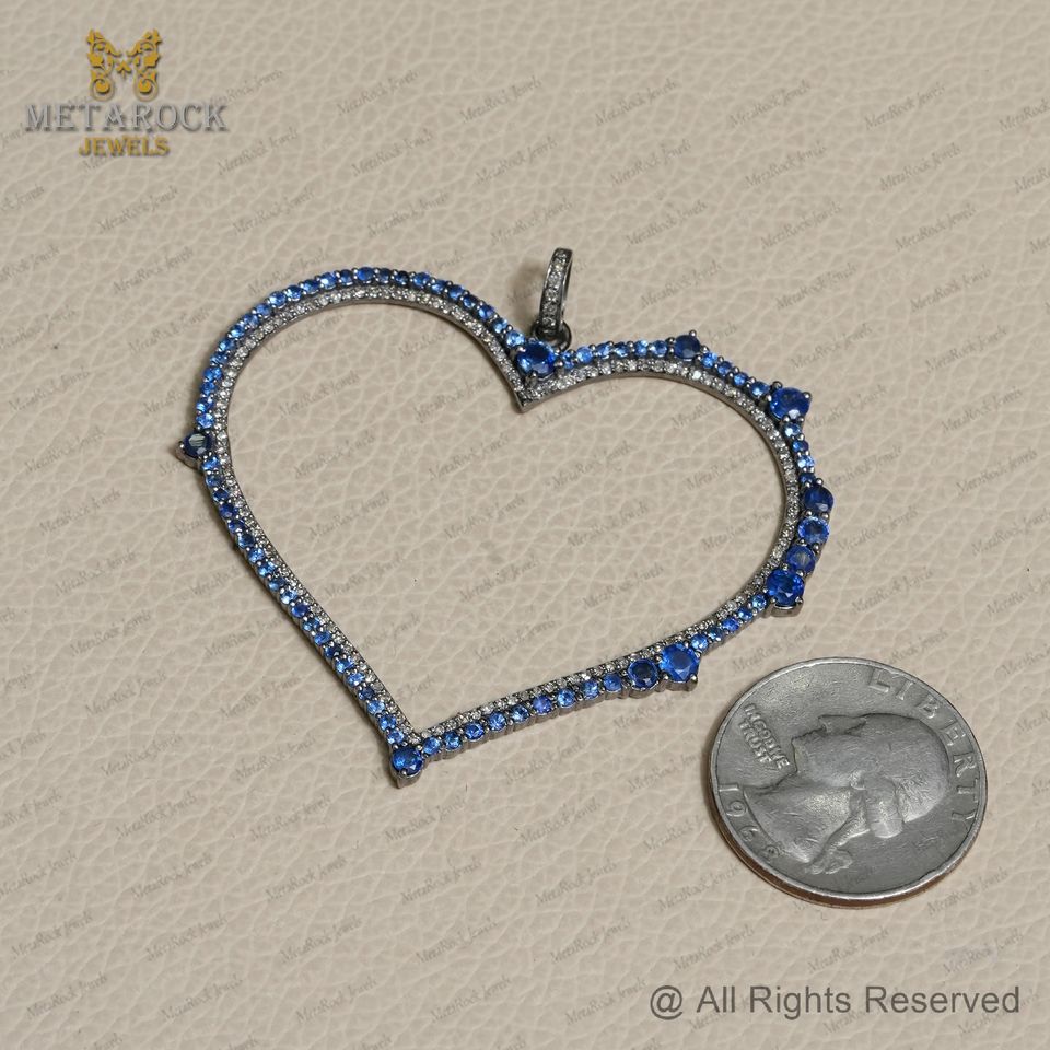 Pendant Name:Blue Sapphire Diamond Heart Pendant