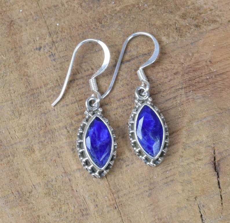 Blue Sapphire Drop Earring 925 Sterling Silver Faceted Gemstone September Birthstone Wedding Gift for Anniversary