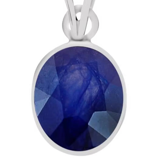 Tishya Diamond Blue Sapphire (Neelam) 4.8cts 5.25ratti Oval Cut Silver Pendant for Men & Women Gold Rose Gold Plating Available