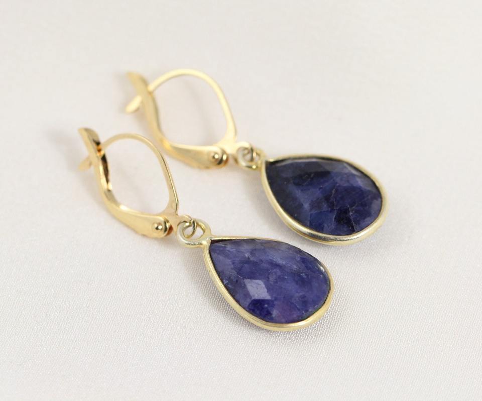 Blue Sapphire Pear-Shape Drop Earrings - Natural Stone September Birthstone Jewelry for Women with Lever-Back Ear Wires