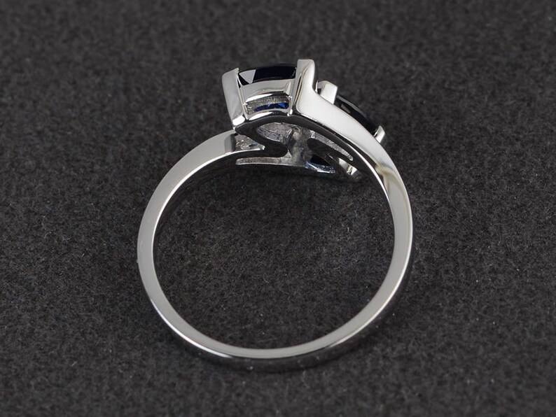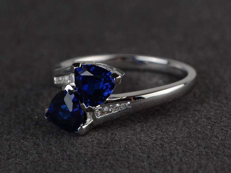 Blue Sapphire Promise Ring Trillion Cut Blue Gemstone Sterling Silver September Birthstone Fine Jewelry