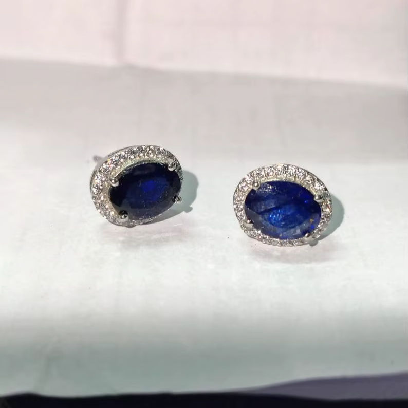 Keyword:Blue Sapphire Stud Earrings With Sparkling Blue Sapphire Stones