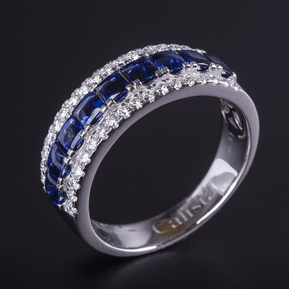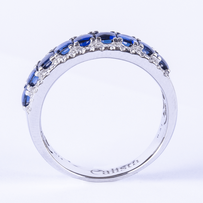 Blue Sapphire Vintage Luxury 14K White Gold Wedding Ring for Women with Channel Setting OEM ODM Factory Vietnam High Quality