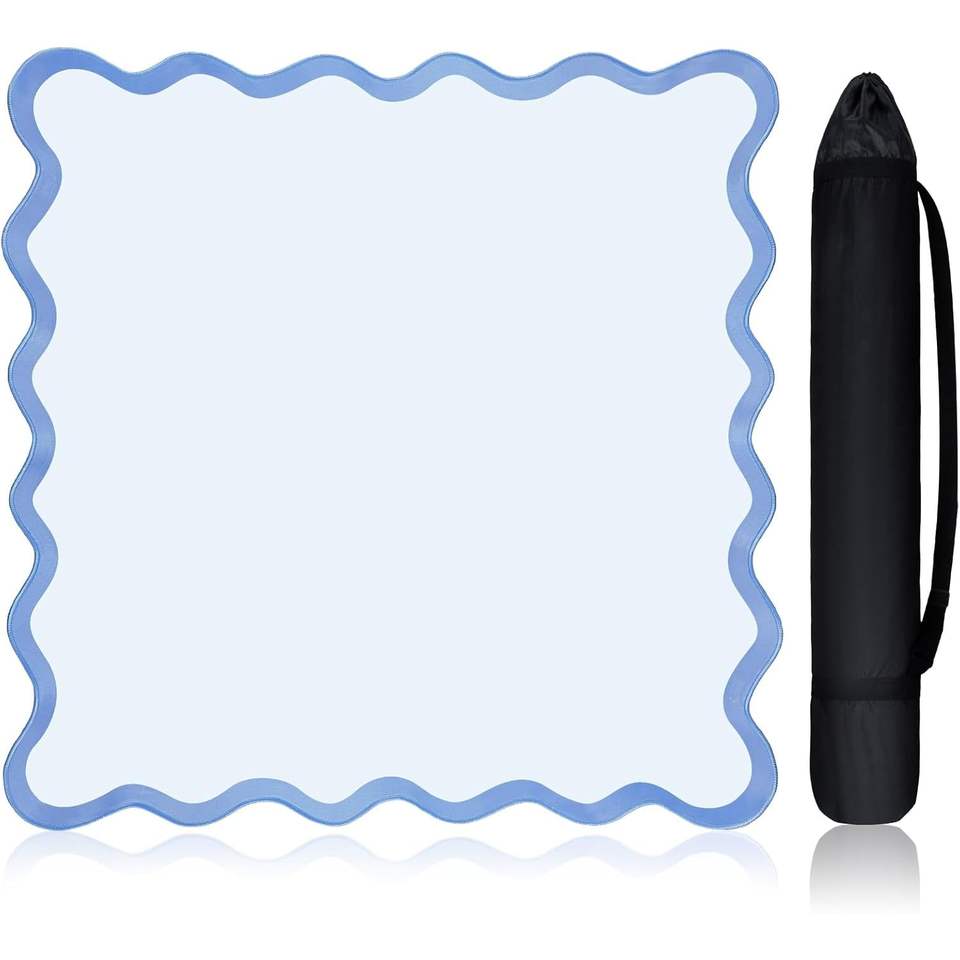 Blue Scalloped Mahjong Mat 31.5"x31.5" Anti-Slip Noise Reduction Table Cover Foldable for Domino Tile Games Party Novelties