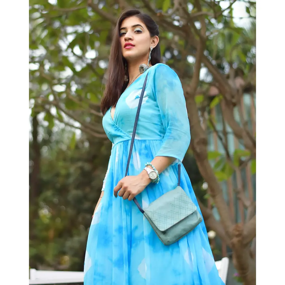 Blue Shade Tie Dye Womens Kurta Ensemble Elegant Contemporary Ethnic Casual Festive Occasion Wear