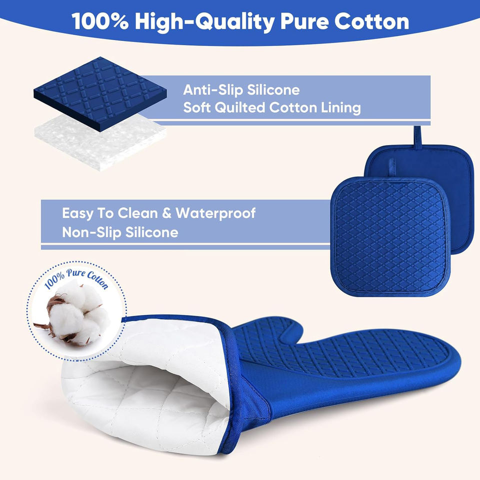 Blue Silicone Stripe Oven Mitt Pot Holder Set Kitchen Baking Cooking Heat Resistant Chef Oven Glove Set