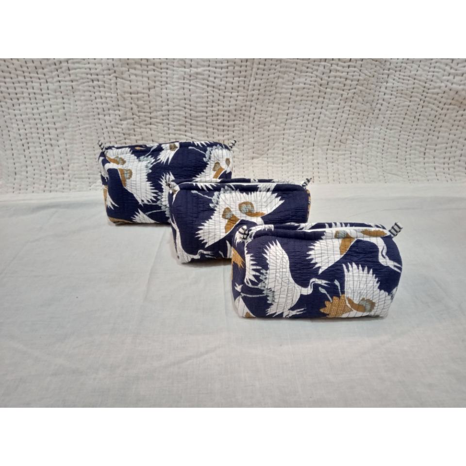 Blue Small and Large Makeup Bag Cotton Quilted Block Printed Gift for Her Handmade Toiletry Cosmetic Bags Pouches 3 in 1 Fabric