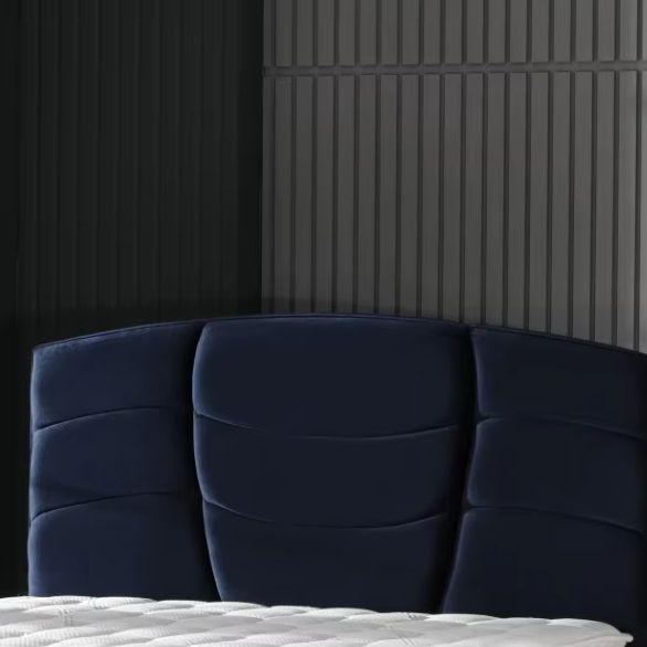 Blue Soft Fabric Headboard Foam Padded Modern Bedroom Design AA