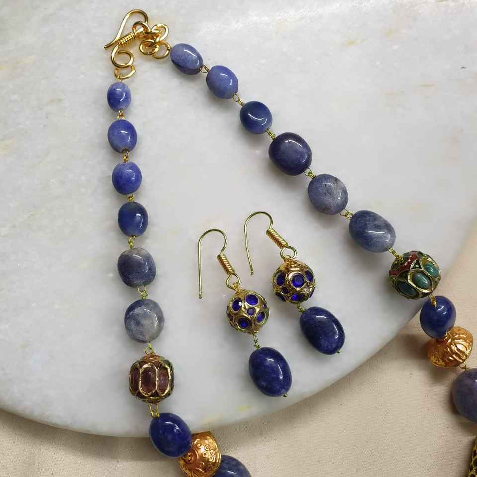Blue Stone Jadau Beaded Fashion Jewelry Set Elegant Necklace and Earrings Combo