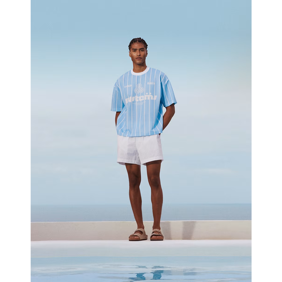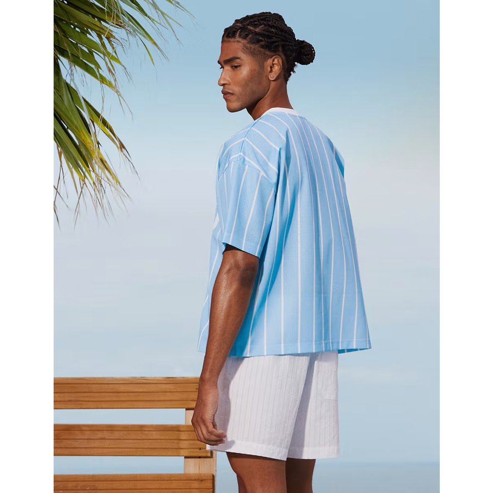 Blue Stripe Jursey Tshirts For Men Export Quality Customizable Bulk Quantity OEM/ODM Tshirt Wholesaler From Bangladesh